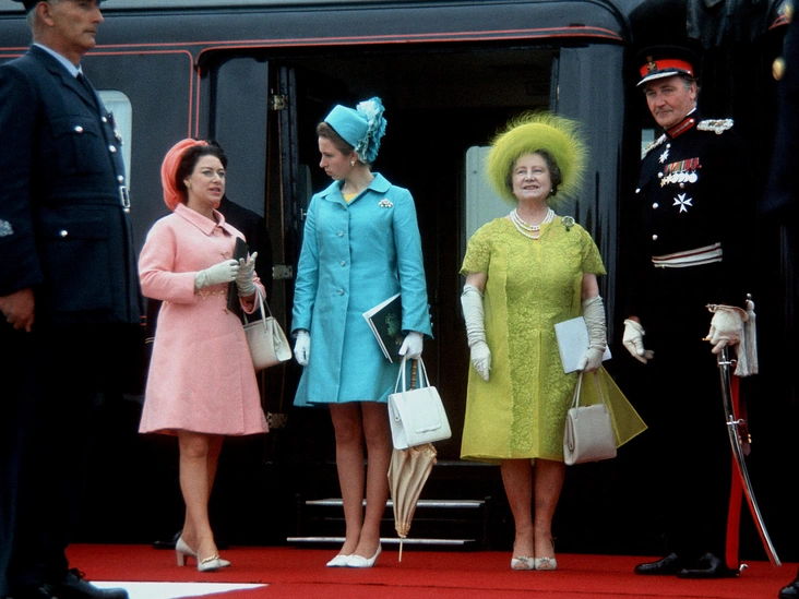 Когда в 1969 году королевская семья собралась на коронацию Чарльза в качестве принца Уэльского в замке Кэрнарвон, его ближайшие родственницы облачились в пастельные ансамбли. Принцесса Маргарет была в розовом пальто и шляпке схожего оттенка, принцесса Анна — в голубом комплекте, а королева-мать — в травянисто-зеленом платье и соответствующем головном уборе. Их королевские особы дополнили белыми перчатками, сумочками на твердом каркасе и светлыми туфлями.