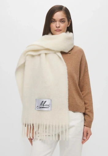 Объемные шарфы и платки — отличное дополнение к приему, особенно если они контрастируют по текстуре с верхней одеждой. Именно теплый мохер, мягкий кашемир и пушистая шерсть придают образам дорогую изюминку.