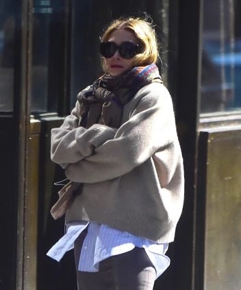 Идея проста и гениальна одновременно: когда вы надеваете свитер с высоким воротником, массивное пальто или объемный шарф, часто возникает вопрос — что делать с волосами? Сестры Олсен знают ответ: они предлагают не выпускать их наружу — Мери-Кейт и Эшли заправляют волосы под одежду, создавая эффект «аккуратной небрежности» и едва уловимой растрепанности.