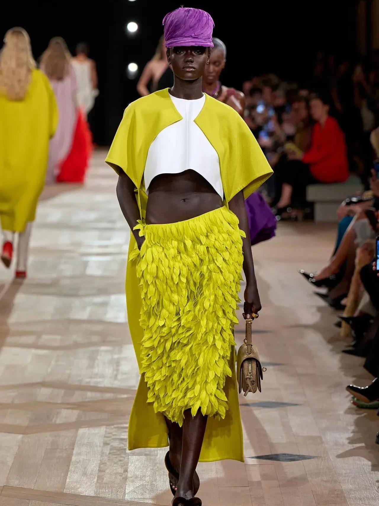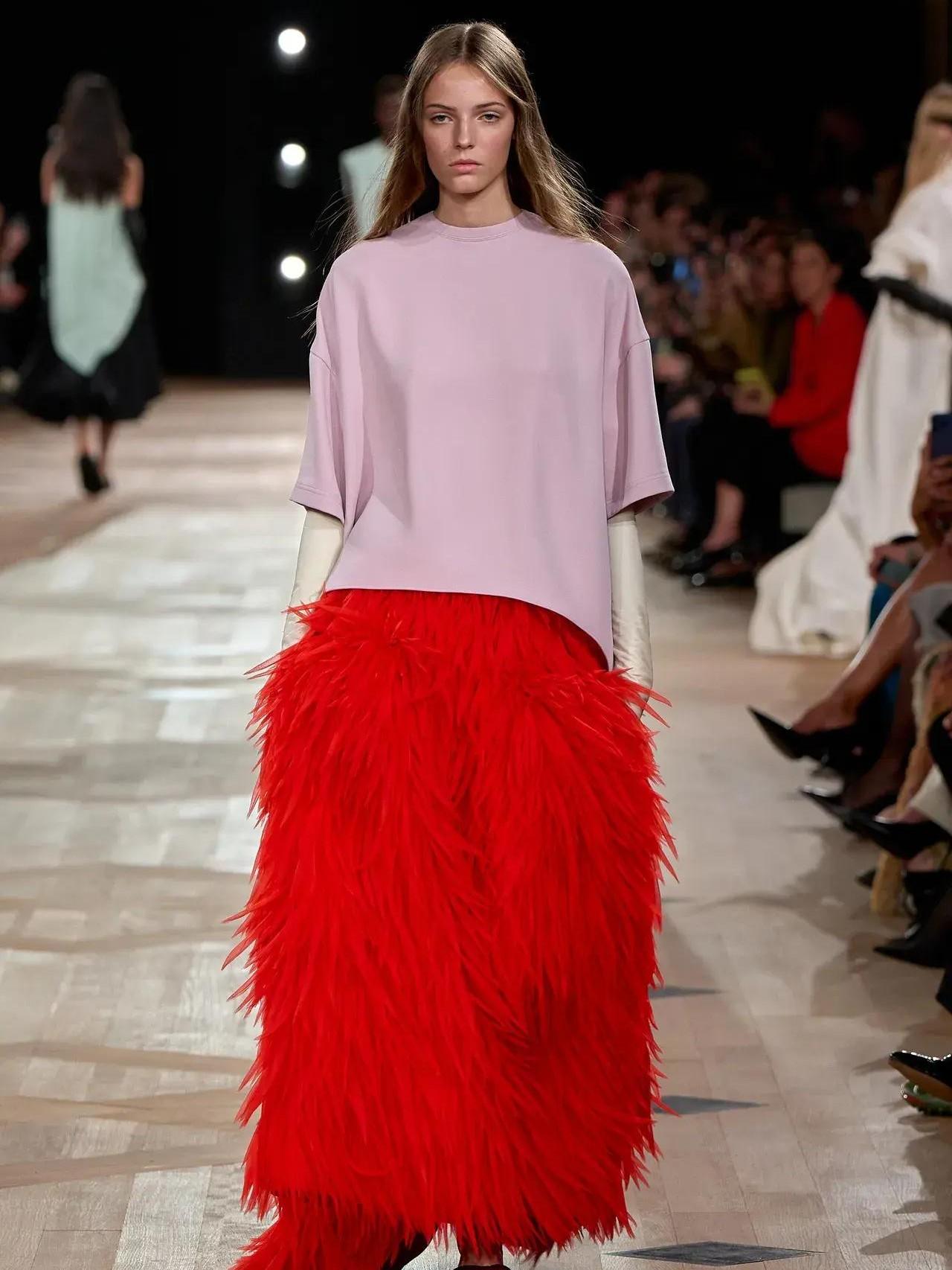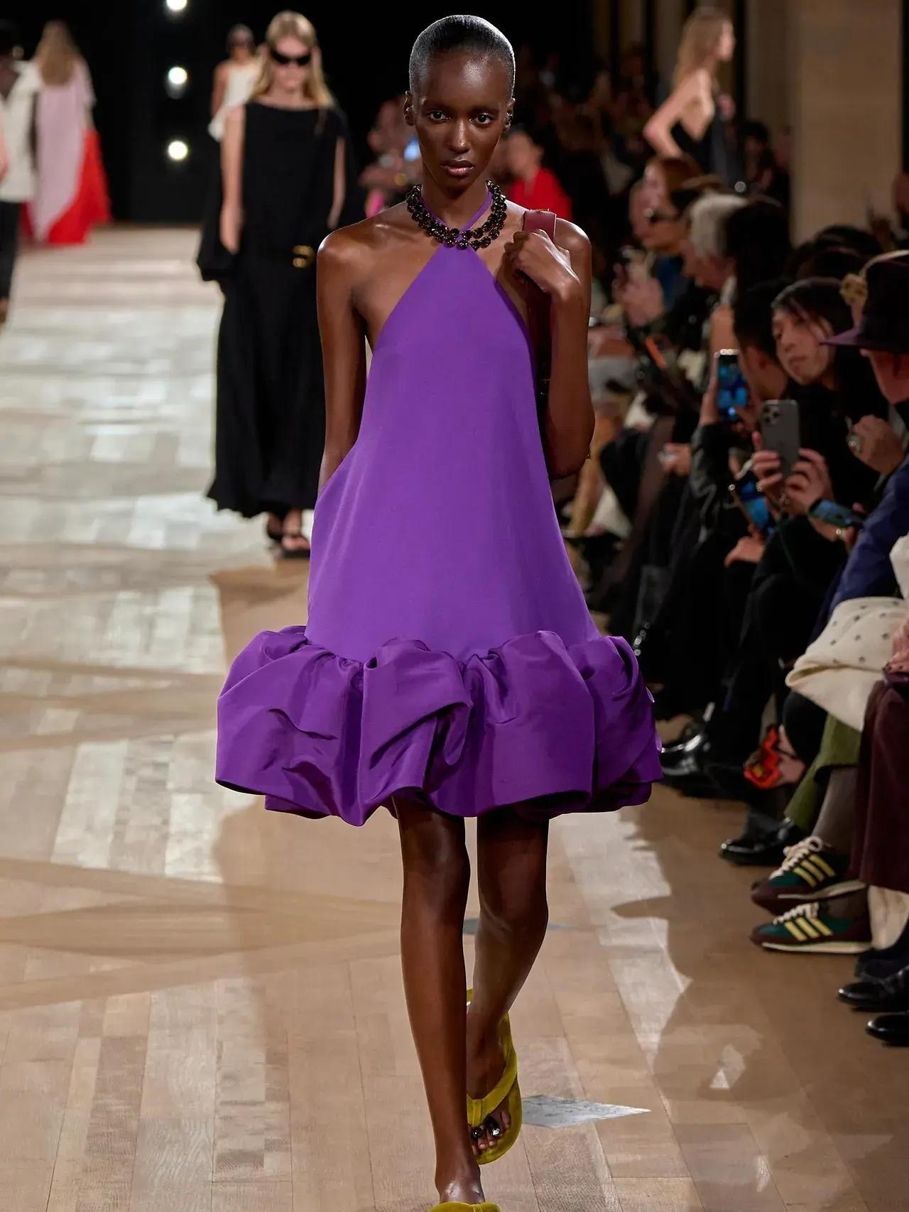 Пиччоли ассоциирует себя с основателем Дома, потому что Кристобаль был «максималистом и минималистом одновременно». Весенний показ был полон роскошных форм и объемов, юбок-баллонов, интерпретации знаменитого пальто-кокона в ярко-зеленом цвете абсента, пурпурного платья-трапеции с пышным подолом из рюшей и ярко-красного драпированного платья на одно плечо, струящимся по спирали асимметричным шарфом.