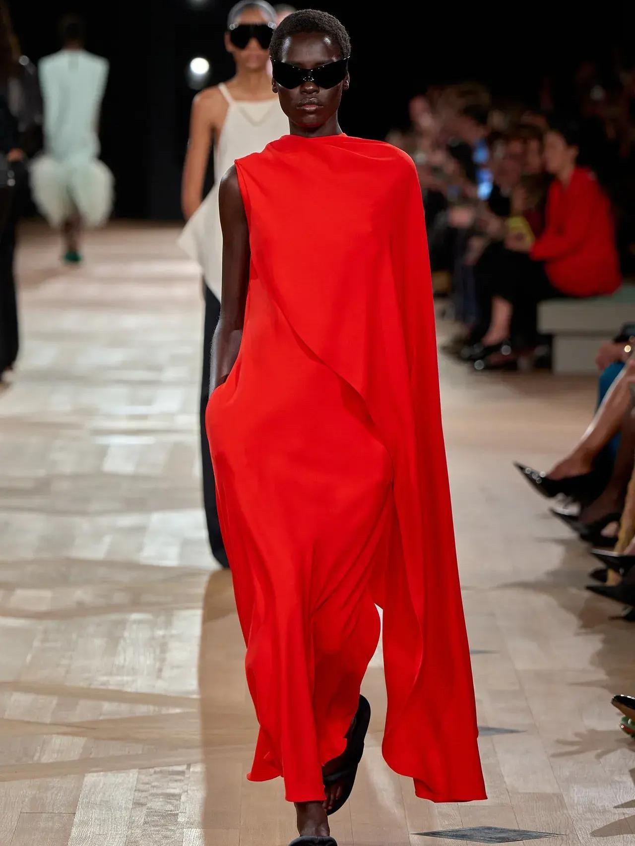 Невозможно не отметить мастерство Пиччоли в создании идеальных вечерних нарядов. Модельер представил ряд платьев на новом показе, которые смотрелись достаточно контрастно на фоне остальных образов. Возможно, это предпосылки к смене основного стиля Balenciaga — от уличного стиля к более утонченным формам (читайте также: Цвет сезона — оранжевый, как и новый IPhone: 5 выигрышных сочетаний в одежде).