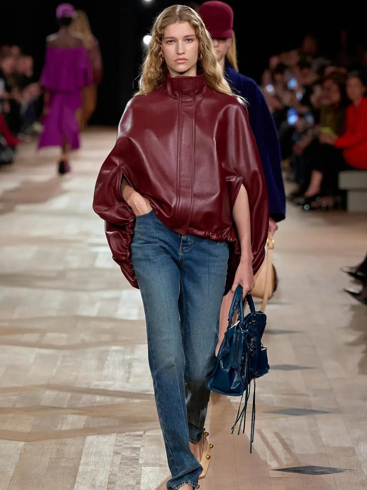В коллекции не было больших толстовок, как у Демны, но Пиччоли, нежно любящий своего предшественника, принес другую форму: чинос приобрели кутюрный крой, бомбер превратился в кожаный «пузырь», а свободная белая рубашка стала настолько большой, что у нее теперь есть шлейф.