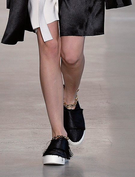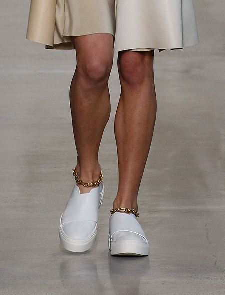 Новый браслет на щиколотку - это не реинкарнация некогда модного аксессуара 90-х. Он другой - более стильный и модный. Calvin Klein, кстати, пошел дальше всех и соединил сразу два тренда в одном: его браслеты на ногу – это внушительных размеров цепи и одновременно – украшение для обуви. А вот у Chloé они едва различимы в переплетении ремешков босоножек. Marc Jacobs предлагает нам не скромничать вовсе – их браслеты – это сложные составные конструкции из бусин и цепочек разных форм.