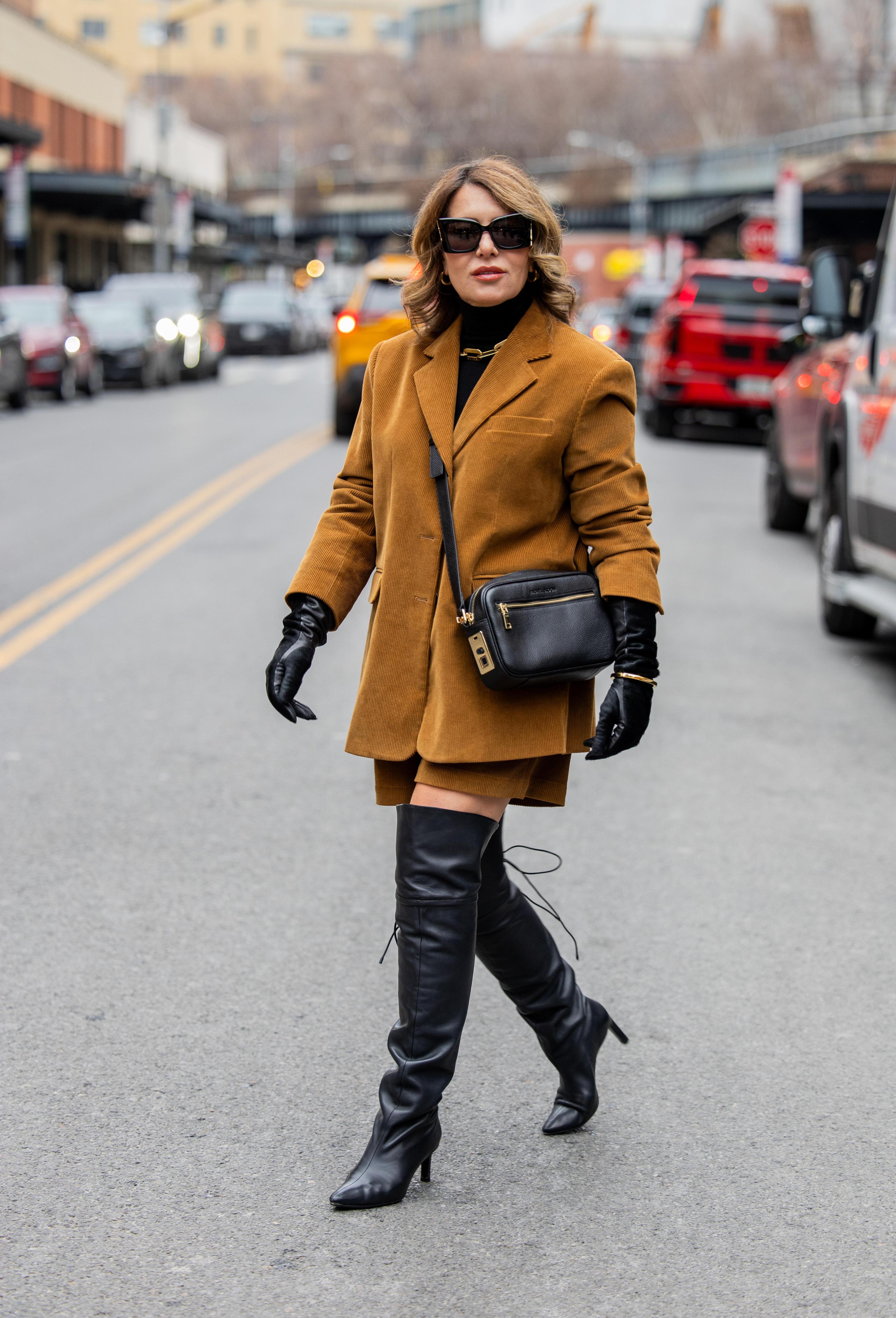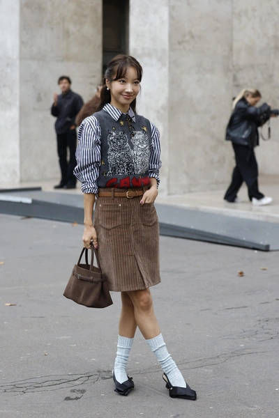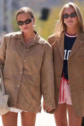 В 2023 году Миучча Прада поразила нас микрошортами в пайетках, больше походившими на нижнее белье. Это положило начало моде на ультракороткие юбки и шорты, которую мы видим и по сей день. Поэтому еще один вариант сочетания: оверсайз-пиджак и мини-юбка или шорты — на фоне объемного верха ноги выглядят стройнее.