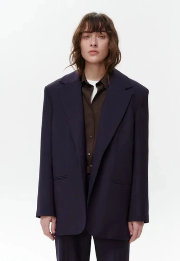 Важно не бояться монохрома: когда в образе сразу два фиолетовых — насыщенный и нюдовый, — он выглядит очень собранным и стильным, особенно в сочетании с минималистичными аксессуарами и лаконичной обувью (читайте также: Главный цвет Парижской Недели моды — и как интегрировать его в свой гардероб).