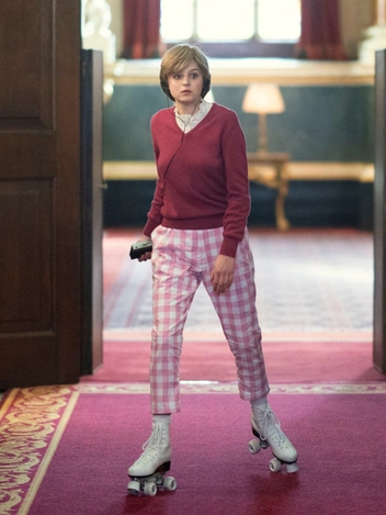 В одной из сцен сериала мы видим Диану, котрая гуляла по дворцу в одиночестве и каталась на роликовых коньках. Правда, создатели «Короны» черпали вдохновение из более позднего гардероба принцессы. В 1986 году Диана примерила похожий наряд во время прогулки с двухлетним принцем Гарри в июле 1986 года.