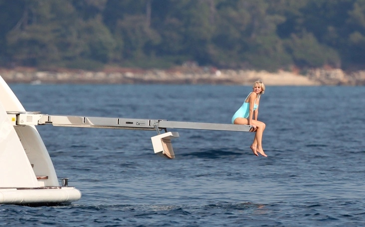 Художник по костюмам также воссоздал небесно-голубой купальник, в котором Диана была запечатлена на трамплине лодки Jonikal Мохамеда Аль-Файеда в августе 1997 года. Наоми предстает на экране в аналогичном купальнике, созданном дизайнером Мелиссой Одабаш, — на кадрах Уоттс поразительно похожа на королевскую особу.