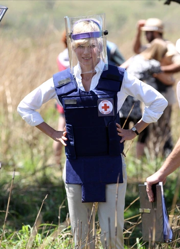 В фильме также был покахаг важный эпизод из жизни Дианы — прогулка по минному полю в Анголе. Принцесса Диана поддержала кампанию против производства и использования противопехотных мин. за семь месяцев до своей смерти она отправилась в Африку: здесь леди Ди надела на себя бронежилет с эмблемой HALO-TRUST и защитную маску и прошла по разминированному полю, чтобы привлечь внимание международного сообщества к опасности наземных мин (читайте также: Экстремальная Диана: прыжки со второго этажа в сугроб и другие безрассудства принцессы). Считается, что ее фотосессии в Анголе повлияли на Оттавский договор — международный запрет на противопехотные мины, который был разработан всего через несколько недель после ее смерти и подписан в декабре 1997 года.