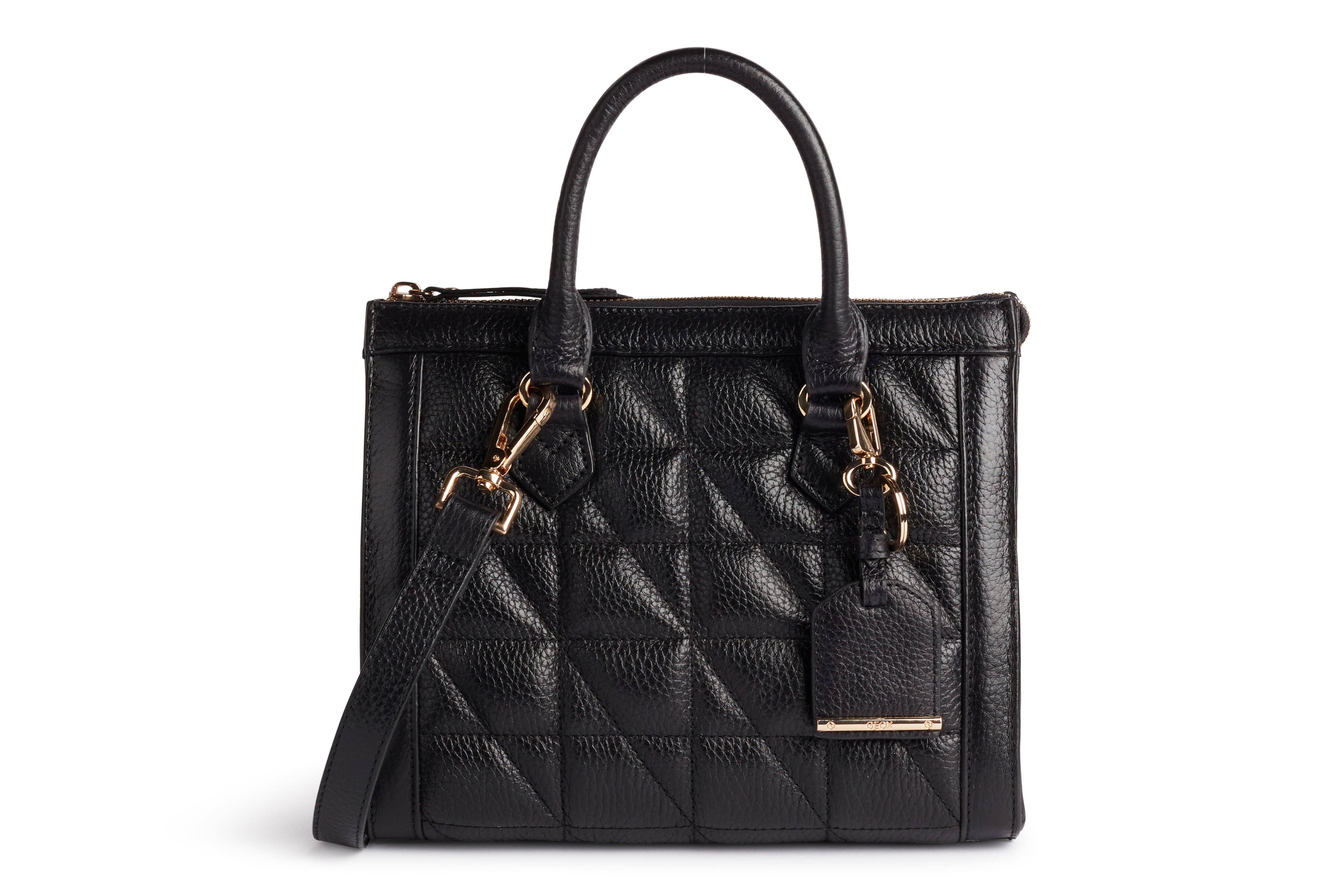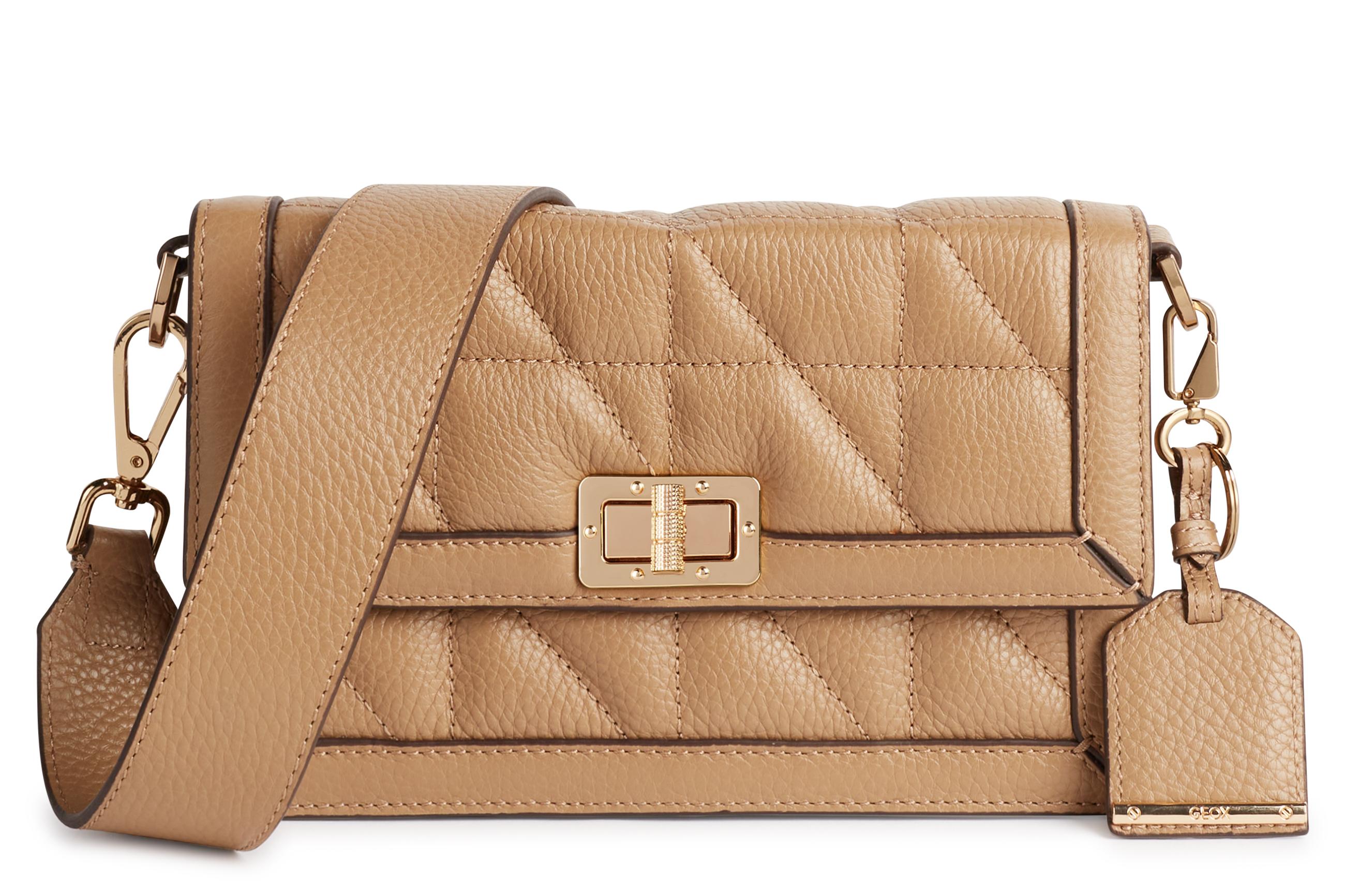 Geox Ameris вместительной геометрической формы станет безупречным дополнением к офисному дресс-коду, придав шарма даже самому строгому образу бизнес-вуман. А маленькая Geox Taliya — незаменимым помощником в конце рабочего дня, когда наступит время перевоплотиться в совсем уже нестрогую, но эффектную леди. Элегантные стеганые сумки из натуральной кожи Geox Olympiy и Fedra в классическом черном, бежевом и графитовом цветах способны украсить теплый осенний образ, эффектно дополнив элегантный тренч или утепленное пальто.