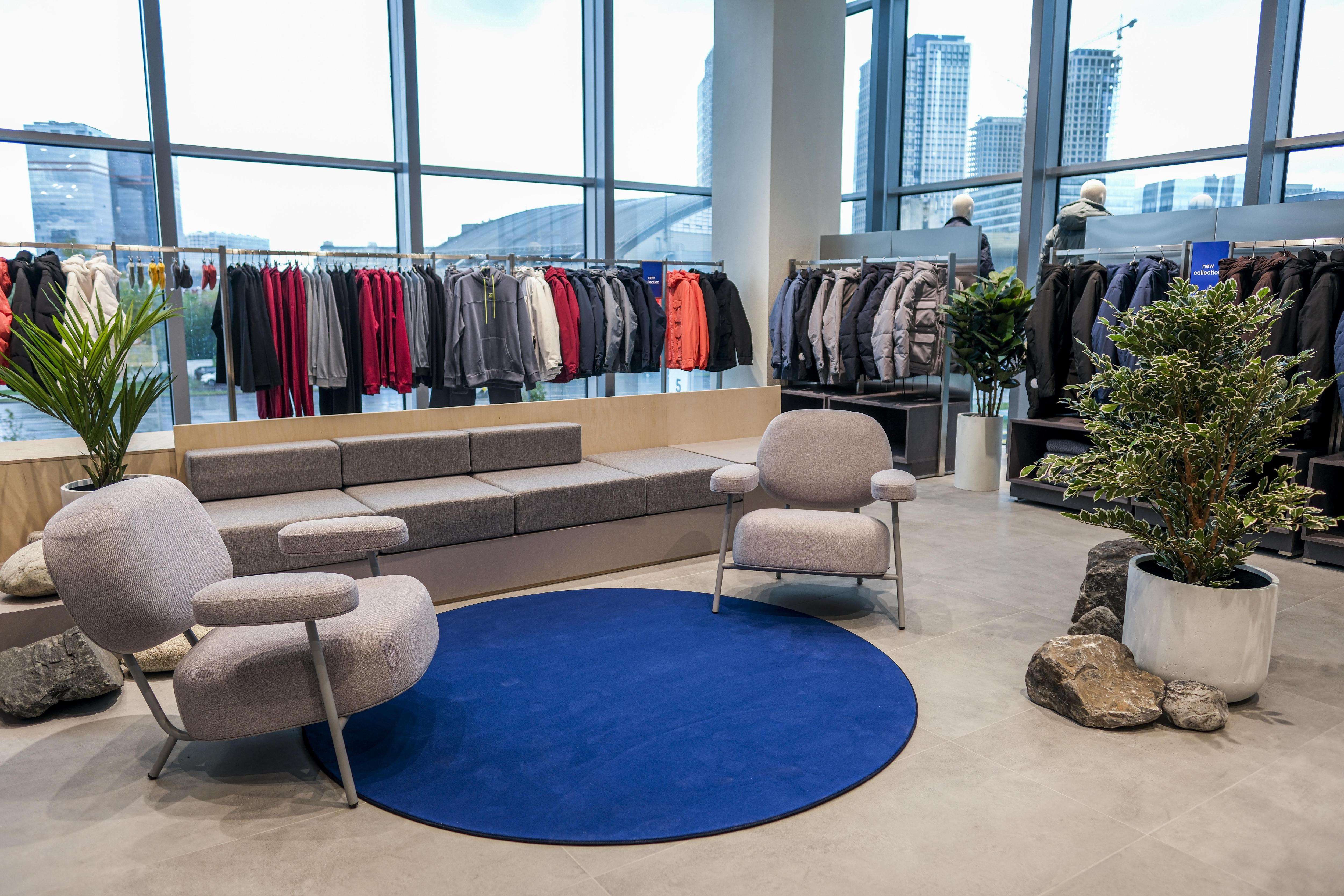 Покупателей ждет элегантная атмосфера с современными деталями, умным освещением, комфортными примерочными, удобными зонами для отдыха и ожидания. Во флагмане уже представлена новая коллекция бренда для осеннего гардероба. Ключевые модели — пальто из микса шерсти и шелка, а на подиумах аккуратно сложены мягкие свитеры из кашемира.