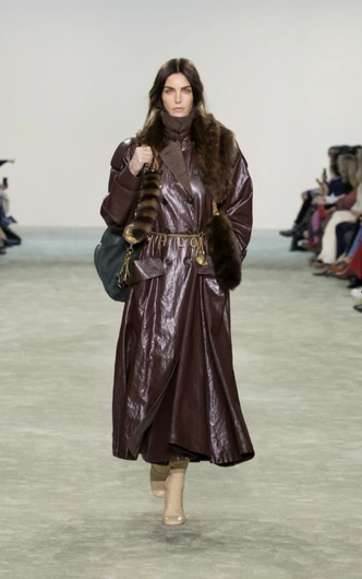 В модном сообществе отношение к черному тренчу почти такое же, как и к бежевому — это база, вызывающая вопроc: «А когда уже будет что-то поинтереснее?» Осенью 2025 года — отвечает Чемена Камали и являет миру коричнево-черешневый макинтош, изящно сочетающийся с золотым поясом. Тот самый момент, когда кожа и мех наконец встретились в одном образе Chloe.