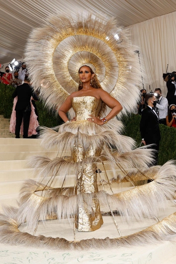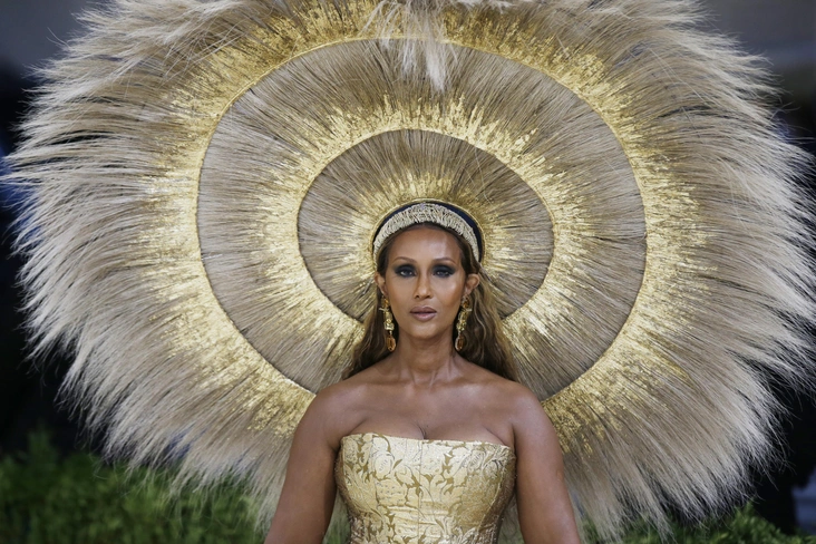 А так формулровку Анны Винтур «В Америке: лексикон моды» поняла топ-модель Иман, которая своим эффектным появлением навсегда запечатлела себя в истории бала Института костюма. Золотой комбинезон и легкие изящные перья, визуально больше напоминающие мех сделали Иман каким-то немного инопланентным, но сказочно прекрасным существом.