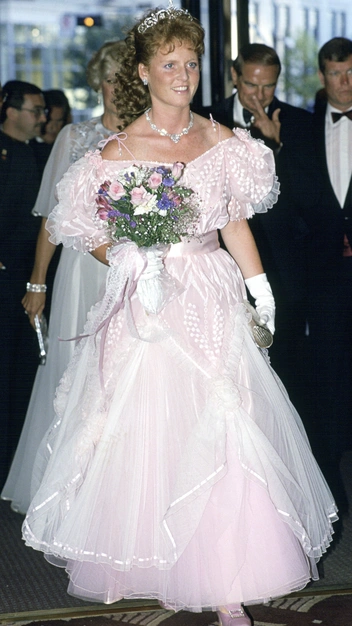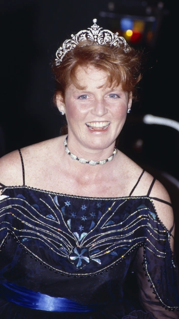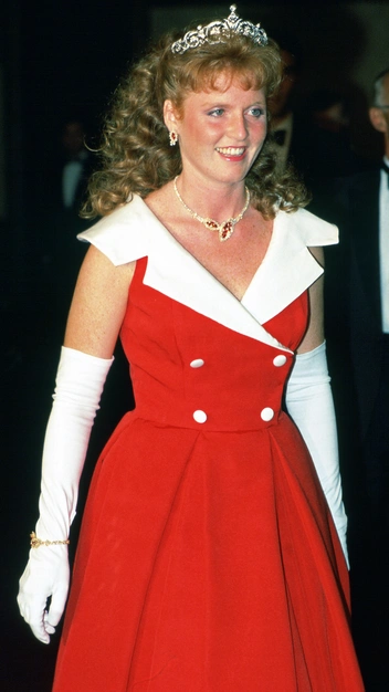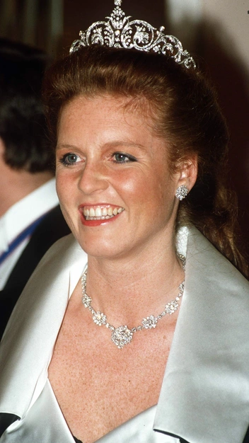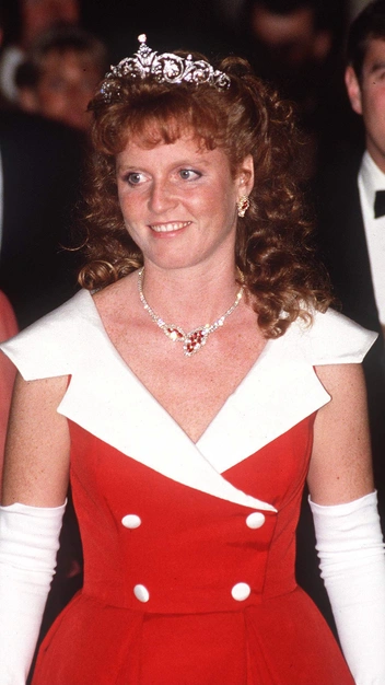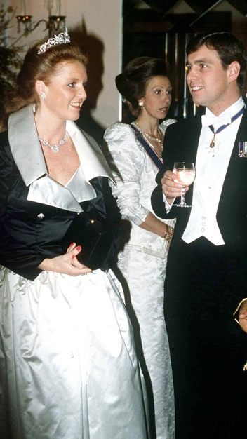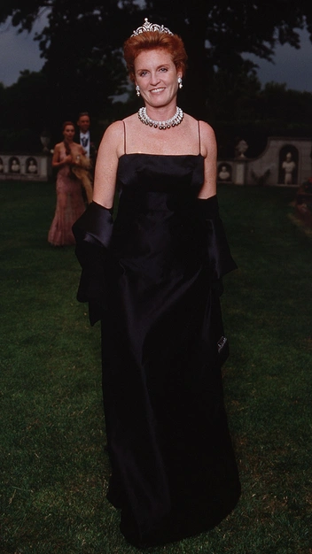 На банкете в лондонском отеле Claridges весной 1987-го королевская семья появилась, облаченная в черно-белые ансамбли, дополненные самыми лучшими украшения. На принцессе Диане была ее любимая диадема «Узелки любви», а герцогиня Сара в белом платье с черным сатиновым жакетом-болеро появилась в тиаре Йорков, дополненной бриллиантовым колье и серьгами из того же гарнитура.