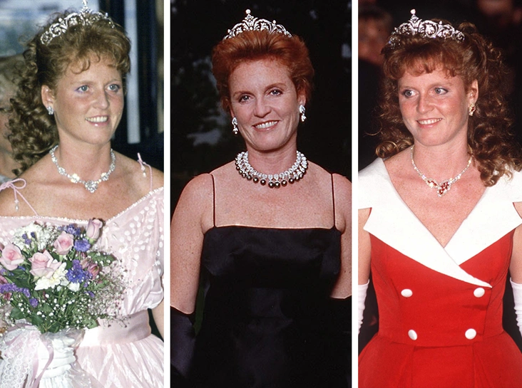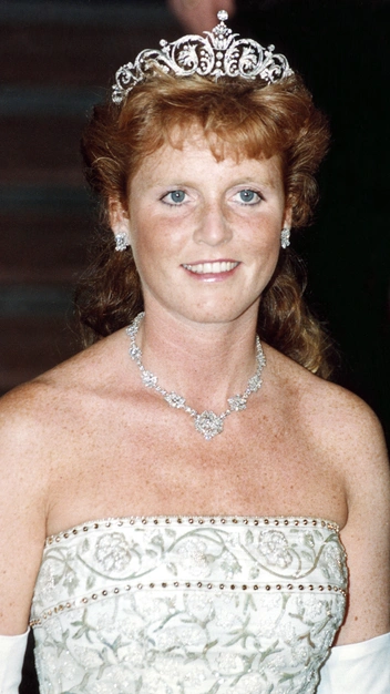Тут на помощь пришла королевская чета. К свадьбе Сары Фергюсон с их средним сыном принцем Эндрю будущей герцогине королева и герцог Эдинбургский подарили тиару, известную как Йоркская. Ослепительное украшение с бриллиантами было разработано ювелирным домом Garrard специально для невесты герцога Йоркского. И герцогиня много раз надевала тиару после свадьбы, нередко используя ее в королевских турах.