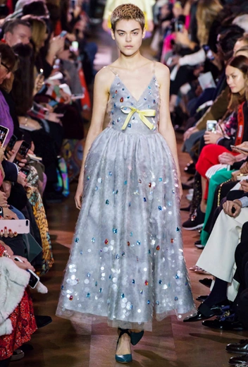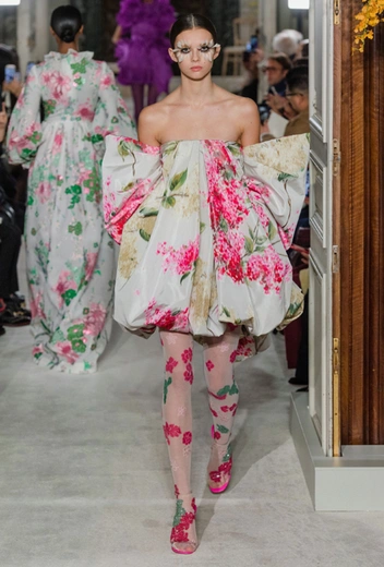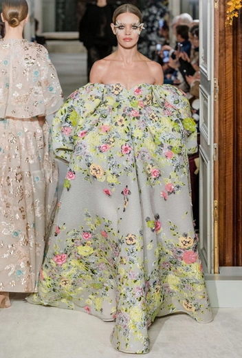 К женственности и хрупкости своих муз традиционно обращаются и Valentino. В новом сезоне Пьерпаоло Пиччоли отвел особое место принтам – у него пышные платья с открытыми плечами украшены флоральными орнаментами. Главное правило – если делаете ставку на затейливые узоры образа, не стоит перегружать наряд акцентными аксессуарами и переливающимися украшениями. Чего-то одного яркого и привлекающего внимание уже будет достаточно.