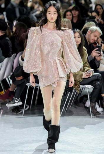 Упор на брутальность сделал в новом сезоне Максим Симонс в коллекции Azzaro – здесь можно найти характерные костюмы, вдоволь усыпанные блестками, мини-платья с крупными бантами и косухи, декорированные стразами. Альтернативу также можно поискать у Alexandre Vauthier (нам особо приглянулась сияющее укороченное платье в розовой палитре).