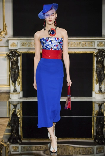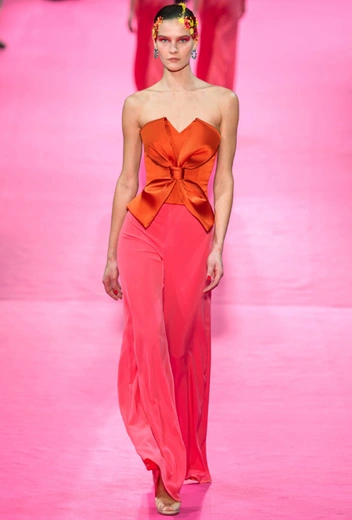 Важный урок по игре со «сложными» цветами преподает и Бертран Гийон в коллекции Schiaparelli. Фуксию он мешает с индиго и свежим зеленым, к пастельному желтому добавляет нежно-розовый, а на разбеленном голубом создает цветочные вышивки оранжевым – к таким сочетаниям стоит присмотреться даже для «обустройства» своего повседневного гардероба.