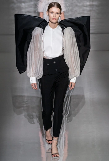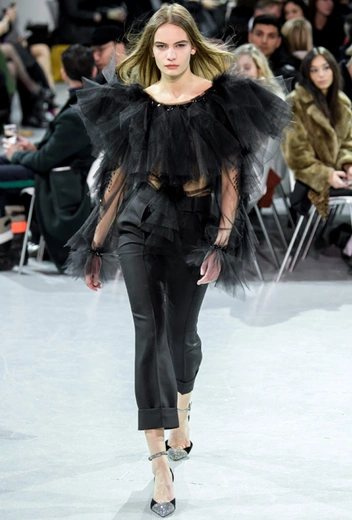 Перфекционистам и любителям лаконичных вечерних нарядов новый сезон тоже придется по вкусу. Умение из простых вещей сделать интересный ансамбль ценится особо, а поэтому советуем присмотреться к образам Christian Dior, Givenchy и Alexandre Vauthier. Отличным решением станет как простая блуза с брюками-дудочками, как у Клэр Уайт Келлер, так и белый топ с юбкой на показе Dior.