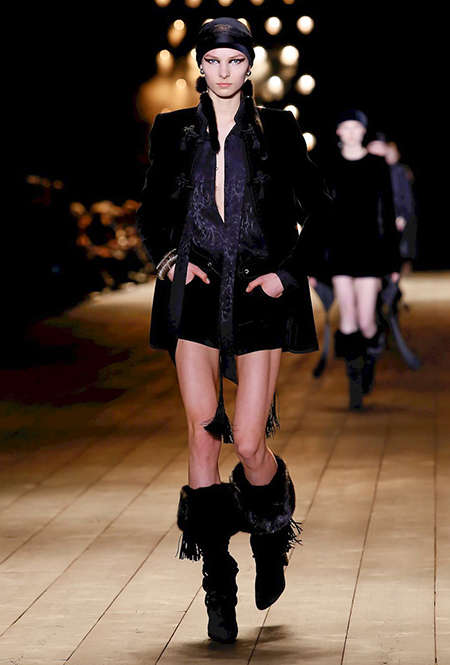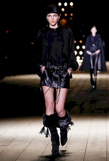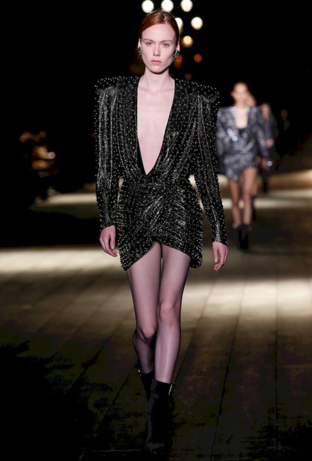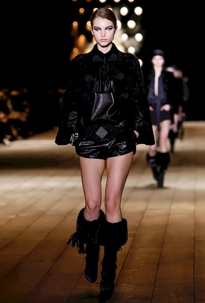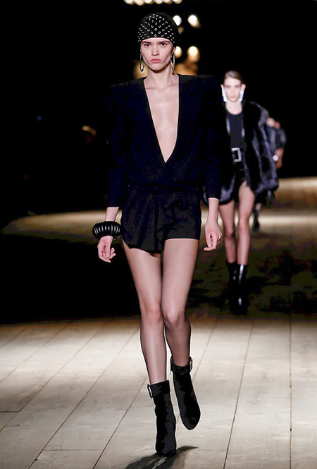Дизайнер как-то сказал, что своим назначением на пост креативного директора Saint Laurent хотел «вернуть на подиум чувственность». Чувственность, однако, в его исполнении вот уже четвертый сезон опасно граничит с безудержной, практически животной сексуальностью: тема секса – ведущая в творчестве амбициозного бельгийца Ваккарелло. Этот лейтмотив – логичное, практически эволюционное следствие работы предшественника Эди Слимана: если тот привнес в коллекции бренда эстетику гранжа, то Ваккарелло «усовершенствовал» ее, добавив немного (или много) перца.