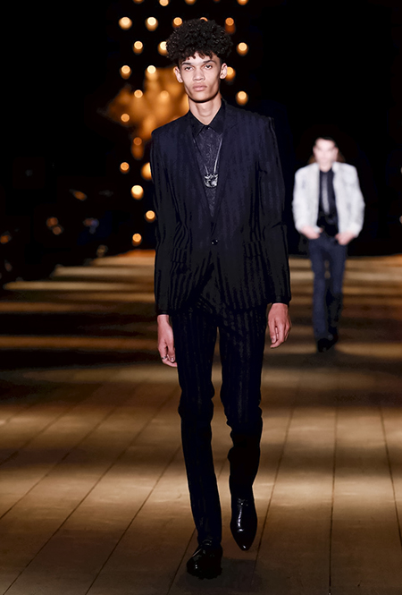 Легендарный основатель бренда привнес в моду знаковые элементы мужского гардероба – чего стоит только знаменитый le smoking 66-го года. Сейчас такая «интервенция» – обычное дело, а приталенными жакетами и брючными костюмами в мужском стиле никого не удивить. Но полвека назад это была сексуальная сенсация: вспомните хотя бы знаменитую Вибеке Кнудсен в объективе Хельмута Ньютона. Сделайте поправку на время, на глобальные тенденции и на общий контекст, в котором сейчас находится женская сексуальность – и вы получите моду от Энтони Ваккарелло. Эту же мысль подтверждает и органично встроенная мужская коллекция, ставшая логичным продолжением андрогинной моды «отформатированного» Saint Laurent.