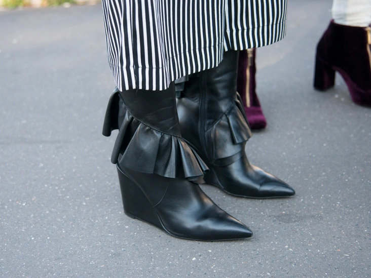 Шнуровка допустима лишь на невысоких ботинках, но никак не на ботильонах или ботфортах. Надев такую модель, вы моментально притяните к себе статус «безвкусица» и получите образ, который носят лишь девушки в провинции (читайте также: Снимите это немедленно: 5 ботинок на шнуровке, которые сделают образ безвкусным). Как исправить внешний вид? Присмотритесь к лаконичным сапогам-трубам без шнуровки и завязок, пусть акцент у них будет на мысе: квадратном или остром — именно такие носят все француженки, законодательницы мод.