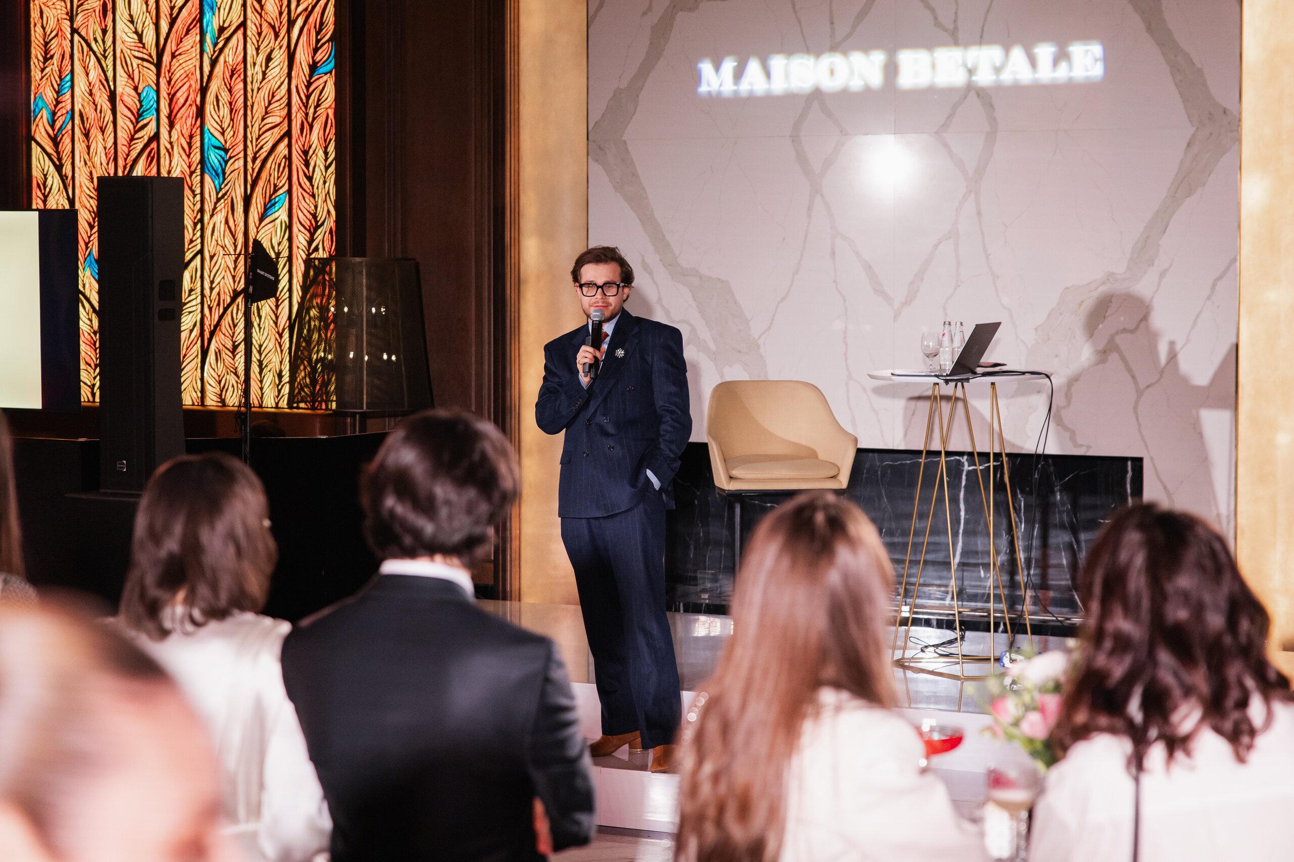 2 апреля в баре «Шаляпин» при гостинице «Метрополь» прошел вечер Maison Betale, посвященный новой весенне-летней коллекции «Аурелия». Пространство с историей стало точным фоном для линии, в которой мода соединяется с эстетикой русской сказки. Событие прошло в формате камерного салона: вокал под рояль, лекция историка моды Анатоля Вовка о связи принтов коллекции с иллюстрациями русских сказок и показ, где романтичные шелка, вышивка и авторские детали раскрывали главную тему коллекции. В центре — образ Жар-птицы как символа света, свободы и внутренней силы. Особое место в линии занимает и фирменный символ Maison Betale — козленок, который отсылает к семейной истории бренда и ремесленной традиции.