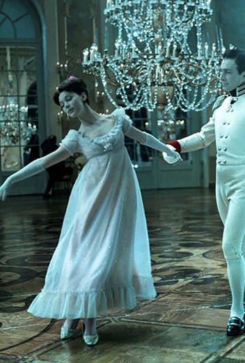 Тот случай, когда наряд является немым продолжением героини. Наташа Ростова в исполнении Людмилы Савельевой покорила сердца зрителей не только своей невинностью и гениальной актерской игрой, но и платьем в стиле ампир, которое было на девушке в сцене на ее «первом большом балу». Оно представляло собой белый чехол, покрытый сверху невесомой прозрачной тканью. Несомненно, одно из самых запоминающихся платьев всего советского кинематографа. И даже тот факт, что в книге оно описано как розовое, а не белое, никак не сказался на производимом впечатлении.