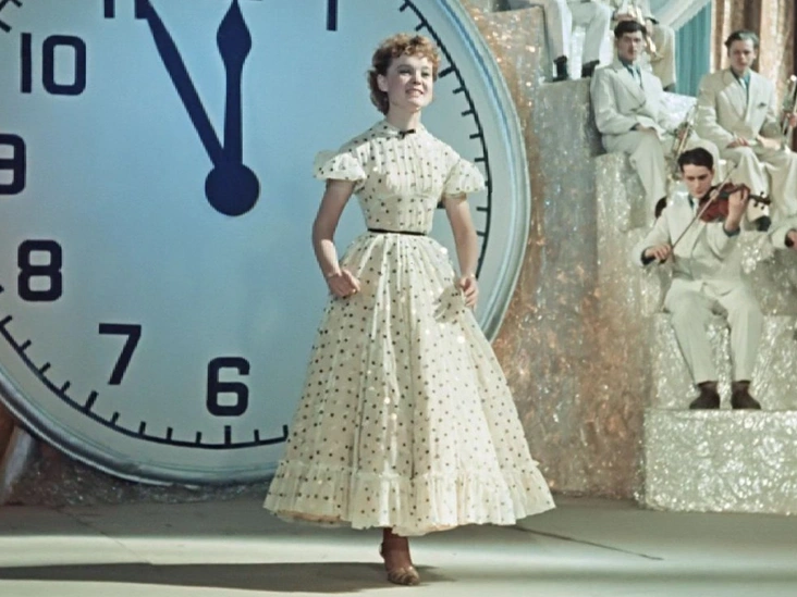 Героиня Людмилы Гурченко запомнилась нарядами невероятной красоты, созданными специально для фильма. Даже человек, ничего не смыслящий в моде, сразу поймет, что все они были выполнены в стиле New Look. Осиная талия Гурченко сделала платье из органзы и расшитое пайетками, еще более идеальным, прочно закрепив его в списке культовых платьев советского кино. Кстати именно после «Карнавальной ночи» подобные модели уверенно «вошли» в советскую моду.