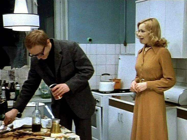 Знаменитое платье-халатик с перламутровыми пуговицами уже давно стало именем собственным. После романтичного наряда Наташи Ростовой и ультрамодного New Look Леночки Крыловой смелое мини на Анне Сергеевне из «Бриллиантовой руки» было чем-то из ряда вон выходящим для консервативного советского зрителя. Однако это только подогрело к нему интерес и сделало его одним из самых знаковых в отечественном кинематографе. За это стоит отдельно поблагодарить Светлану Светличную, которая сама подобрала халатик для своей героини, впрочем, как и пуговицы к нему.