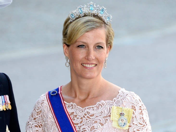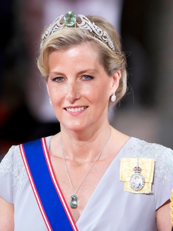 Графиня Уэссекская — главная поклонница аквамаринов среди королевских особ. Она регулярно носит эту бриллиантовую тиару, увенчанную крупным аквамарином. У украшения есть один секрет: из тиары оно превращается в колье. На свадьбе принца Швеции Карла Филиппа и его избранницы Софии Хеллквист, состоявшейся в июне 2015 году, графиня Софи появилась в комплекте из тиары и дополняющей ее подвески с прямоугольным аквамарином. В 2006-м Уэссекскую уже видели в том же украшении, надетом как колье, на гала-вечере ChildLine и Mission Enfance в Banqueting House.