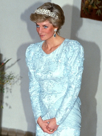 На банкете в Мюнхене во время официального турне по Германии осенью 1987 года принцесса Уэльская появилась в фамильной тиаре Спенсеров и серьгах-каплях с крупными аквамаринами и бриллиантами. В следующем году Диана вновь блеснула украшением на Каннском фестивале и вновь дополнила им голубое платье. В обоих случаях принцесса подчеркнула гамму яркой голубой подводкой.