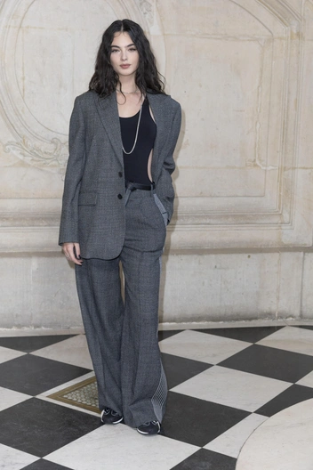 Модель Дева Кассель, дочь культовой пары Моники Белуччи и Венсана Касселя, позировала перед кутюрным показом Dior. Для мероприятия она выбрала серый брючный костюм в паре с необычным черным боди. Также образ звезда дополнила длинной цепочкой на шее, ремнем, который был завязан в узел, и кроссовками (читайте также: 5 фактов о Деве Кассель, дочери Моники Беллуччи и Венсана Касселя).