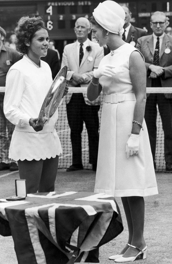 Принцесса Александра Кентская — еще одна тайная модница семьи Виндзоров. В 1971 году она доказала это не словом, а делом. Чтобы вручить тарелку Венеры Розуотер австралийской спортсменке Эвонн Гулагонг Коули, королевская особа появилась на корте в элегантном платье мятного оттенка с контрастной окантовкой, дополненном шляпой в виде тюрбана (читайте также: Самые известные шляпы принцессы Дианы, которые вошли в историю).