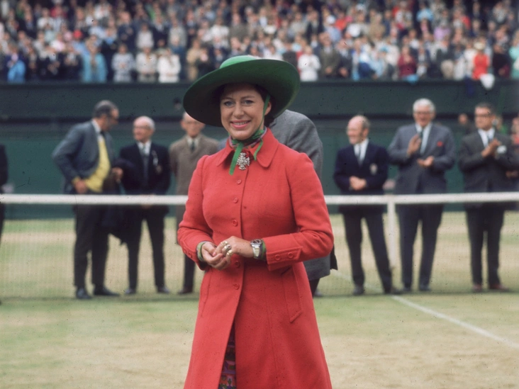 Зеленый и красный — крайне сложная неожиданная комбинация, с которой, впрочем, принцесса Маргарет легко справляется. Ее красное пальто на пуговицах и зеленая шляпа на мужском финале Уимблдона 1970 года — образ, не имеющий себе равных. Этот наряд стал настоящей квинтэссенцией стиля Маргарет: смелого, но элегантного (читайте также: Стиль принцессы Маргарет: главные модные уроки от сестры Елизаветы II). Однако лучшая часть ее наряда — это сет из нескольких серебряных и золотых колец с подходящими часами и брошь с мальтийским крестом.