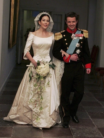 У подвенечного наряда невесты датского кронпринца Фредерика было сразу несколько секретов. Во-первых, австралийский рекламный менеджер хотела воздать дань уважения королевской семье, поэтому подол ее платья включил кружево, некогда принадлежавшее прабабушке ее возлюбленного. Кроме того, в пояс платья с корсетным лифом было вшито обручальное кольцо матери невесты — таким образом Мэри убедилась, что ее мама, скончавшаяся за семь лет до этого, с ней в этот важный день. Завершающим штрихом к лаконичному подвенечному платью, концентрирующему все внимание на красоте невесты, стала фата, которую датские королевские невесты надевают с 1905 года. Ну а о родине Мэри напоминал букет с австралийским эвкалиптом.