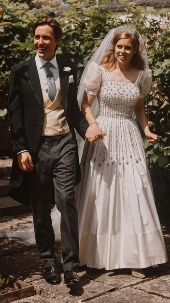 Принцесса Беатрис решила подобрать образ по всем законам осознанной моды. Мало того, что она позаимствовала свой наряд у августейшей бабушки — туфли, в которых она появилась на своем торжестве, она тоже носила ранее (эту же пару девушка примерила для свадьбы принца Уильяма и Кейт Миддлтон в 2011 году). Изящные босоножки Valentino цвета шампанского, усыпанные переливающимися на свету камнями, идеально дополняли винтажное платье оттенка слоновой кости.