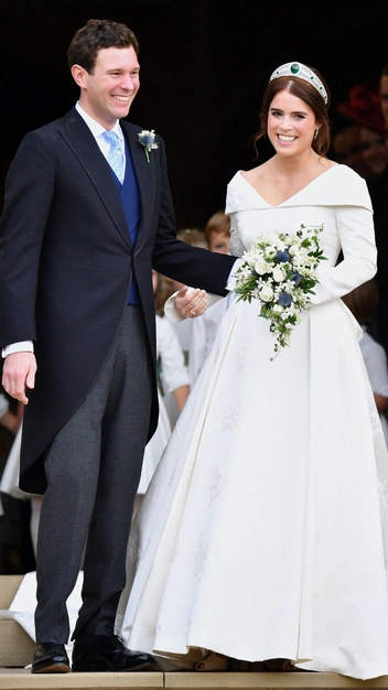 Принцесса Евгения появилась в паре с открытым носком в винтажном стиле и каблуком от бренда Charlotte Olympia на своей свадьбе с Джеком Бруксбэнком в октябре 2018 года. Свадебные туфли были сделаны из фактурной ткани цвета слоновой кости и оттеняли ее свадебное платье, автором которого стал дизайнерский дуэт Peter Pilotto.