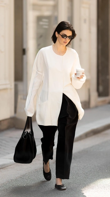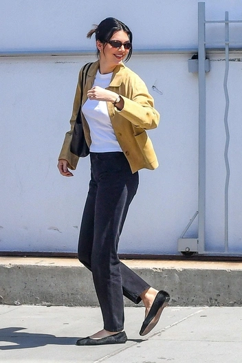 Отличительные черты ее аутфитов в последние годы — это плоская подошва (балетки, лоферы, кроссовки), спокойные цвета (коричневый, серый, черный), отсутствие откровенности (мешковатые наряды сменяются облегающими только на дорожках), а также никакой логомании (она носит минималистичные бренды, по типу The Row или Jacquemus).