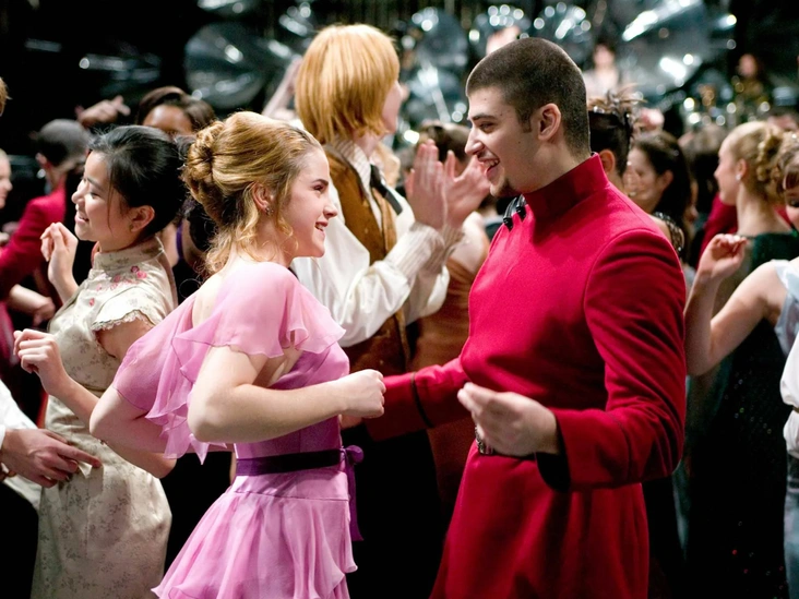 Какие же восхищенные взгляды были у Рона и Гарри, когда Гермиона спускалась в очаровательном платье на праздничный бал. Тогда с ней мечтали танцевать все парни из школы Хогвартс, но за руку она держалась со студентом Дурмстранга — Виктором Крамом. На юной Гермионе нежный и воздушный наряд в лавандовом цвете с рукавами-крылышками и рюшами, в котором героиню Эммы Уотсон впервые увидели как «маленькую женщину» (читайте также: Навсегда в памяти: звезды «Гарри Поттера», которых уже нет с нами).