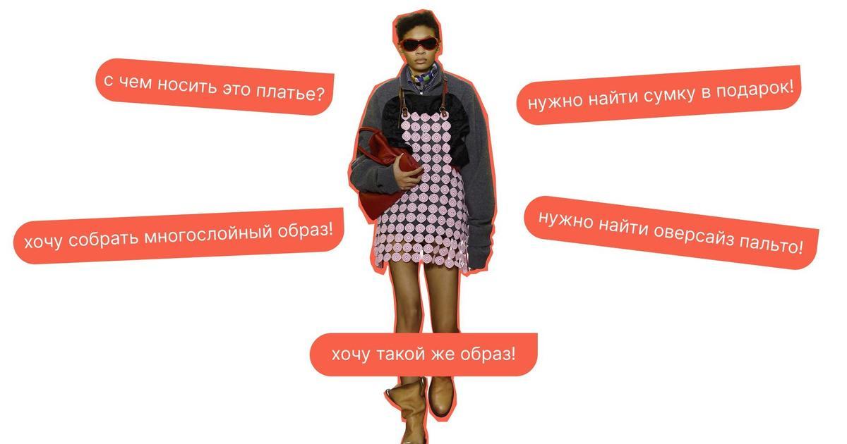 И не забывайте про ИИ-агента (по ссылке в мобильной версии вы сможете сразу перейти на переписку с ним) — он сможет не только подобрать вещи по фото прямо в чате — без бесконечных вкладок и лишних походов в торговый центр, но и подскажет, как их сочетать между собой. «С чем носить это платье?» — пишете вопрос ему, и он моментально выдает вам ответ с классной подборкой.