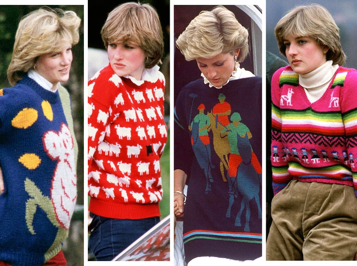 Количество образов, которые принцесса Диана примерила во время своей публичной жизни в королевской семье, исчисляется сотнями. Мы все помним ее гламурное платье мести, культовый вечерний наряд для танца с Джоном Траволтой или нашумевший свадебный туалет. Но несмотря на все многообразие платьев с оборками, цветных костюмов с юбками и роскошных украшений, ее настоящее мастерство проявлялась в обыденном — в базовых образах для деловых встреч или прогулок с детьми. Она могла найти возвышенное и элегантное в безвкусном, причем талантливо носила не только джинсы и пиджаки, но и, пожалуй, самое неожиданное для гардероба монаршей особы — милые рождественское свитеры и джемперы с декором и принтами.