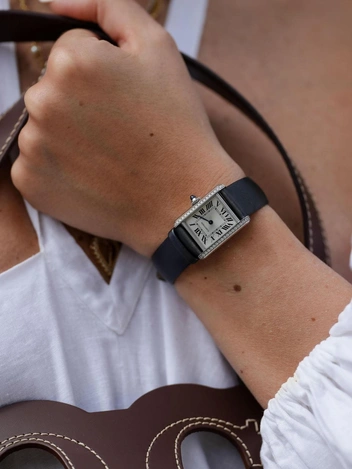 Cartier Tank Française — это классический люкс по доступной цене. Нержавеющая сталь, серебристый циферблат с римскими цифрами, минималистичный дизайн и размер для утонченной женской руки. Модель настолько универсальна, что подойдет любой даме вне времени, возраста и пространства. Цена на официальном сайте Cartier стартует с 325 тысяч рублей, самый дорогой аксессуар обойдется поклонникам ювелирного дома почти в три миллиона — эти часы выполнены из желтого золота и инкрустированы 27-ю бриллиантами (читайте также: Символ великой любви: почему все хотят кольцо Cartier Trinity — украшение, которое носили Грейс Келли и принцесса Диана).