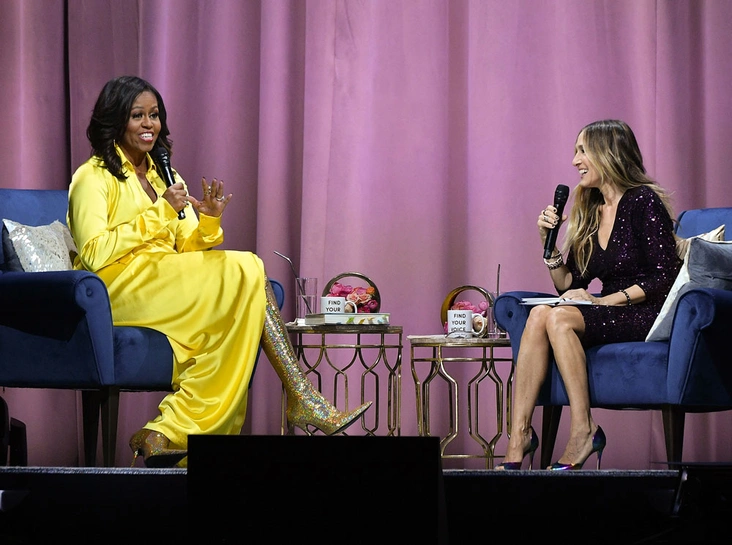 Сегодня Мишель все чаще выбирает необычные дизайнерские решения. Облегающее платье с зигзагообразным вырезом, блестящий костюм от Balmain. Чего стоит ее выбор для презентации книги в 2018 году в Barclays Center – лимонное шелковое платье и ботфорты Balenciaga. Этот выход – громкое заявление Мишель, которое дает нам полную картину о ее характере (живая, смелая, не боится экспериментов).