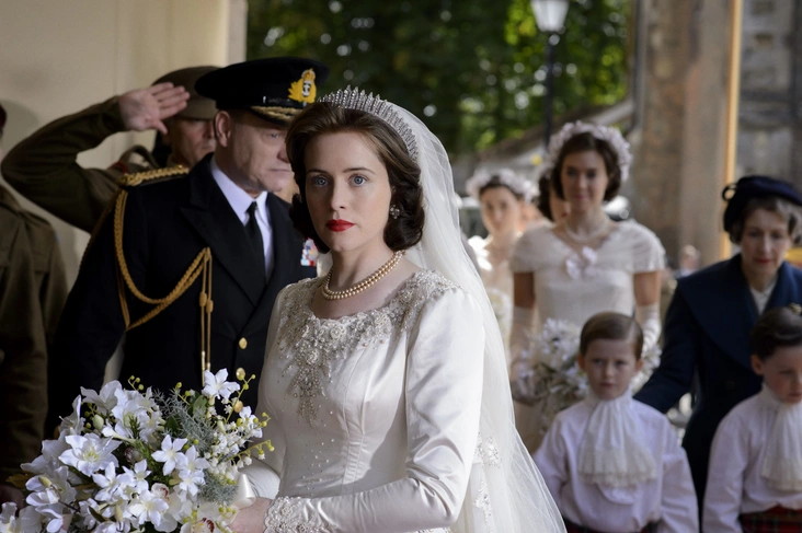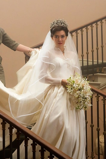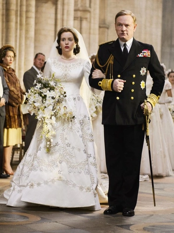Расшитое бисером свадебное платье принцессы Елизаветы было одним из знаковых образов, которые Клэптон и ее команда должны были воссоздать в мельчайших деталях. Потрясающая копия свадебного платья принцессы Елизаветы обошлась Netflix в 30 000 фунтов стерлингов, и на ее создание ушло несколько недель. Богато украшенный наряд главной актрисы Клэр Фой является точной копией свадебного платья, которое королева надела на торжество в 1947 году.