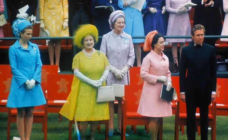 Команда Робертс также скопировала синее платье принцессы Анны и шляпу, розовое пальто принцессы Маргарет и ярко-зеленый образ королевы-матери с необычной перистой шляпой. В тот день члены королевской семьи выглядели так же красочно и отчасти нелепо, как и их персонажи в сериале.