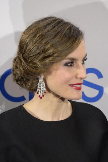 Памятуя флаг Испании, королеве Летиции чаще других пристало носить украшения с рубинами — однако в почете у монарха, в основном, бриллианты. Впрочем, есть и пара рубиновых украшений — например, эти серьги-шандельеры. В отличие от других украшений подборки, они были куплены королевой за собственные средства, а не получены из фамильной шкатулки. Правда, Летиция не так часто носит роскошные серьги, предпочитая им аксессуары от Zara или Mango.