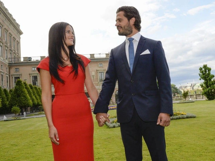 На фотографии, объявляющей об обручении шведского принца Карла Филипа с бывшей моделью Софией Хельквист и сделанной в саду Стокгольмского дворца 27 июня 2014 года примерно за год до свадьбы пары, девушка предстает в облегающем морковно-красном платье-футляре по моде 2010-х, которое, с одной стороны, выглядит достаточно формально, с другой — подчеркивает ее фигуру.