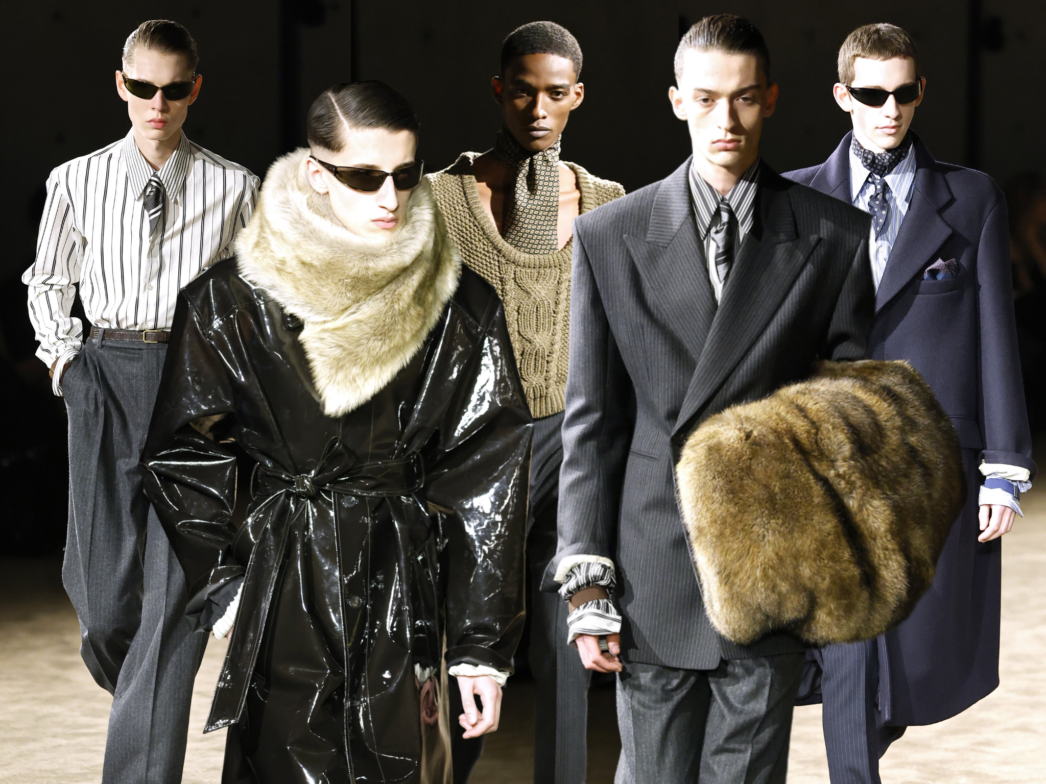 Так, например, меховые горжетки, набравшие бешенную популярность к концу 2025-го, в авторстве Энтони Ваккарелло становятся XXL размера. Теперь вместо аккуратных норковых манишек и тонких шарфов, присматриваемся к размерам покрупнее. Пожалуй, впервые мы видим действительно практичный тренд — утеплиться отныне можно по полной.