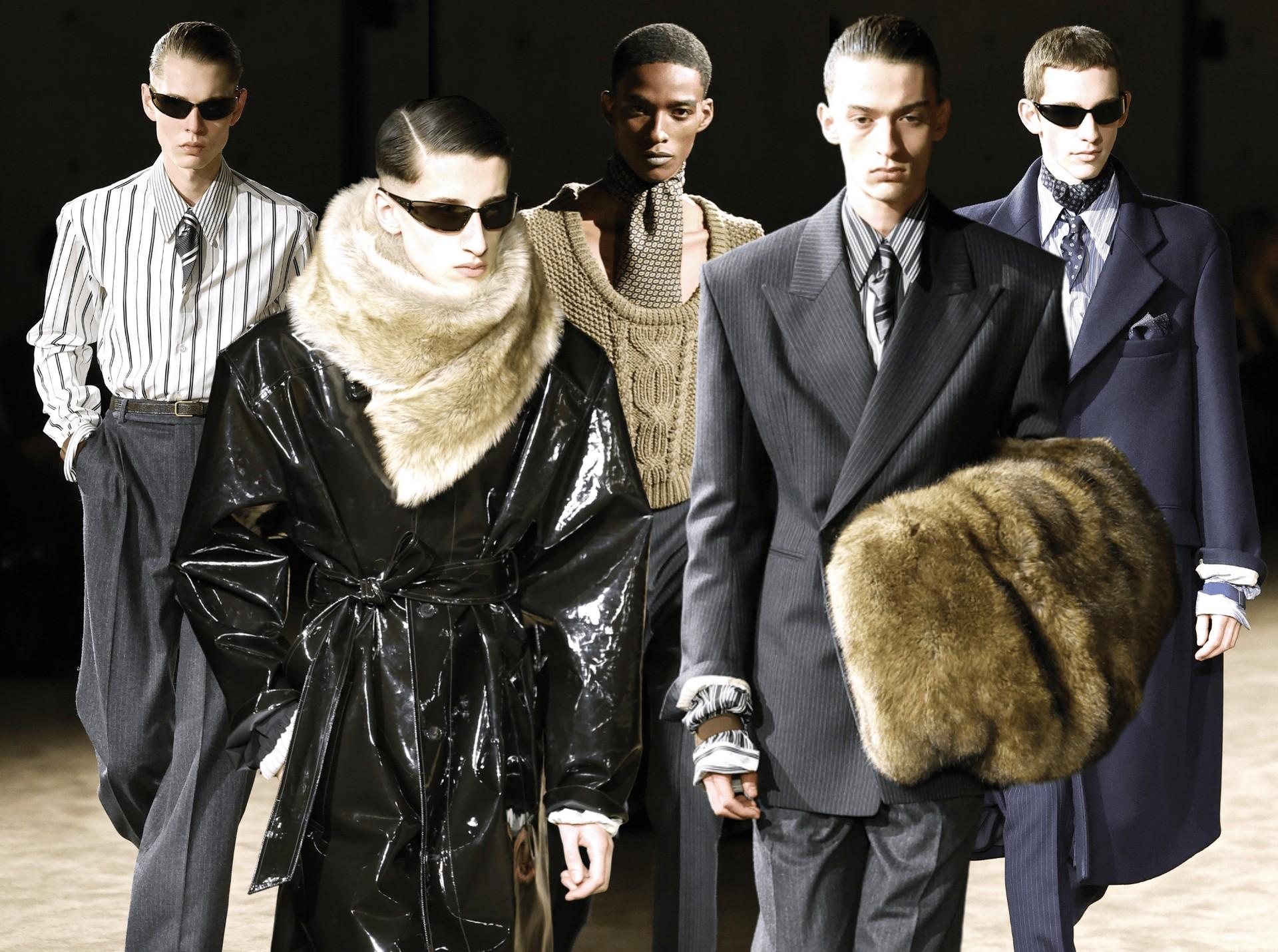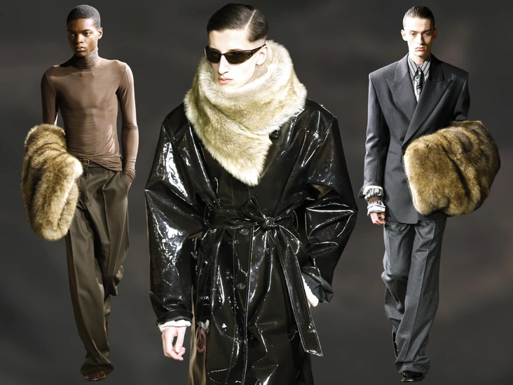 Мех везде, со всем и сразу мы начали носить еще прошлой осенью. Дом Saint Laurent лишь укрепляет его позиции в новом сезоне. А еще основательно вводит его в мужские гардеробы и подкидывает нам парочку новых идей (читайте также: Как стилизовать самые акцентные вещи сезона: леопардовые шубы, укороченные перчатки и меховые аксессуары).