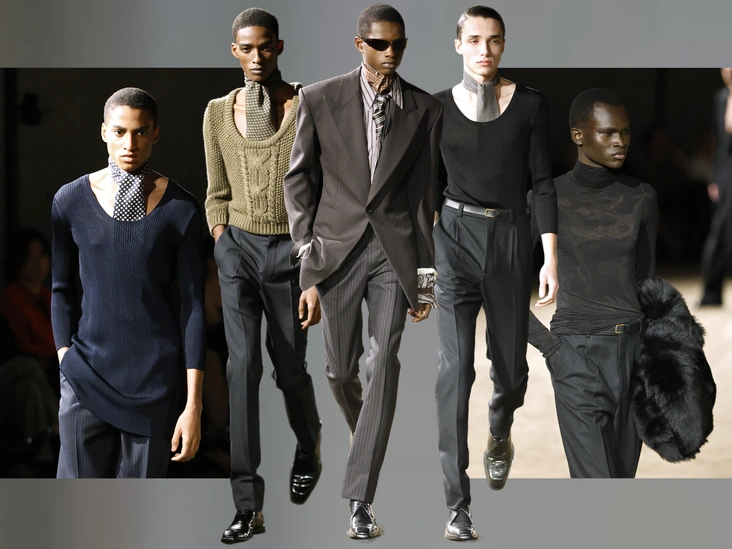 Здесь, если присмотреться, мы встречаем не один, а по меньшей мере два стайлтрика. Во-первых, Энтони рекомендует вооружиться эффектным шелковым платком. Им можно либо полностью заметить галстук, либо надеть их вместе, создав эффектную пару. Второй же фокус заключается в том, чтобы заправить аксессуар под одежду. Галстуки дизайнер вставляет между пуговиц на рубашке, а шарфы продевает под горловины на свитерах.